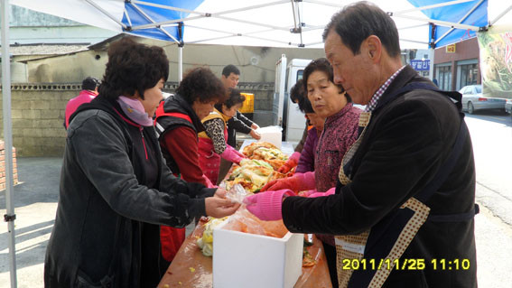 지난달 25일 대창새마을금고 김칠관 이사장과 부녀회가 김장을 하여 지역 독거노인과 19개마을회관 및 자연부락 사랑방에 김장김치 56상자를 손수 배달했다.