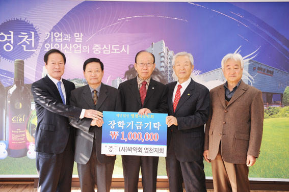 지난달 25일 사단법인 박약회 영천지회(회장 김효술)에서 100만원, 청통면 계포리 정선득 이장이 100만원의 장학기금을 지역인재육성에 써달라며 기탁했다.