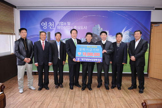 지난 1일에는 영천양잠농업협동조합(조합장 최필환)에서 1000만원, 영천시 민간어린이집연합회(회장 최용선)에서 500만원, 서부동 20통 김진현 통장이 100만원의 장학기금을 지역인재 양성에 보태고 싶다며 영천시장학회에 기탁했다. 시청을 방문한 최필환 조합장은 “우리 지역의 우수 양잠가공품을 사랑해주시는 시민들에게 감사를 드리며 앞으로 더 노력해 나가겠다. 지역과 함께 발전해 나가는 양잠조합이 되기 위해 지역인재를 위한 장학기금을 내놓게 되었다.”고 소감을 전했다.
