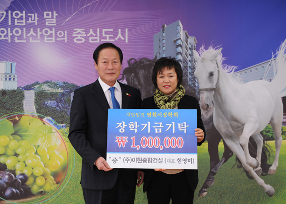 영천여고동문회(회장 이잠태)와 여고동문 현영미 씨가 대표로 있는 (주)이현종합건설(매산동 소재)에서 지난 2일 각각 100만원의 장학기금을 기탁했다.