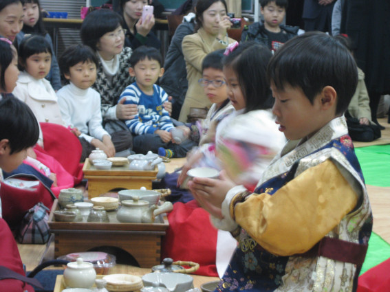 샛별유치원은 지난 5, 6일 이틀간 졸업을 앞둔 7세들의 다도 발표회를 가졌다. 일 년 동안 조금씩 익혀온 다도예절을 학부모와 지역의 각계층 손님들을 모시고 선보이는 자리로 유치부들이 작은 손을 놀려 직접 차를 우려내어 찻잔에 담아 대접하는 것이다.
