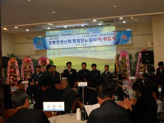 2012년 청통면청년회 회장단 및 감사 이,취임식이 지난 6일 청통면민 종합복지타운 2층에서 기관단체장, 지역별 청년회장, 전직회장, 회원 등 100여명이 참석한 가운데 열렸다.