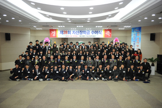 자산장학재단(이사장 김종대)은 2월 7일(화) 영천시청 대회의실에서 장학관계자 및 허의행 자치행정국장, 우은복 교육장, 지역 고등학교 교장 및 장학금 수혜자 등 100여명이 참석한 가운데 2012년도 제28회 자산장학금 수여식을 가졌다.