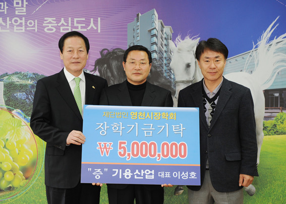 임고면에 위치한 기용산업은 철구조물 생산 및 임대업을 하는 업체로 이성호 대표는 “정신철강 정창식 대표를 통해 지역의 인재육성 노력에 관한 소식을 접했다. 영천시장학회 장학기금 기탁을 통해 지역사회와 함께 성장하는 기업으로 나아가고자 한다.