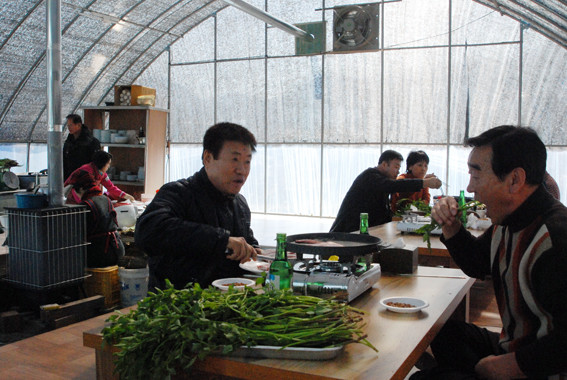 미나리의 계절이 왔다. 지역에는 화북 정각, 신녕 치산, 금호 약남, 자양 성곡, 고경 덕정 마을의 미나리 재배단지에서 본격 판매에 들어갔다. 사진은 지난 20일 시식회가 열린 고경면 황수탕 미나리밭 임시식당 모습.