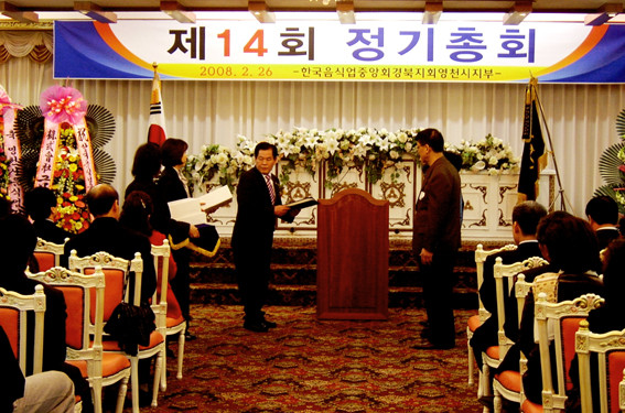 이날 총회에서는 우수업소(와사등, 새가야식당, 고속기사식당, 청정석쇠촌, 부산식당, 북성루, 왕손짜장)에 대한 표창장 전달이 있었고 영천고교 박 모 학생을 비롯한 12명에 장학금을 전달했다.