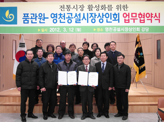 전통시장 활성화를 위한 국립농산물품질관리원 영천사무소(소장 신호동)와 영천공설시장 상인회(회장 김영우) 업무협약식이 지난 12일 오전 공설시장 상인회 만남의 광장에서 열렸다.