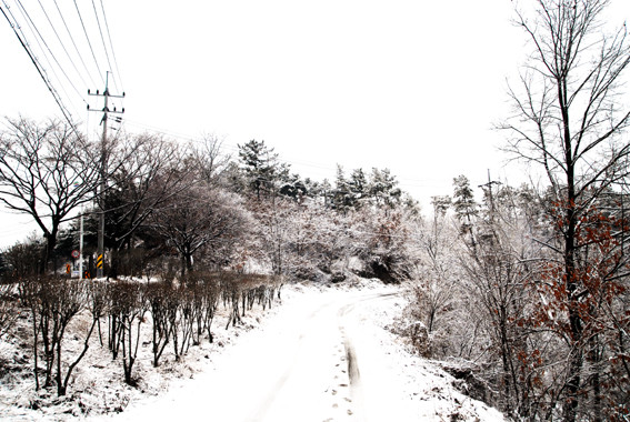 지난달 24일 밤부터 내린 비가 25일 새벽 4시부터 눈으로 바뀌면서 온 세상을 하얗게 만들었다.