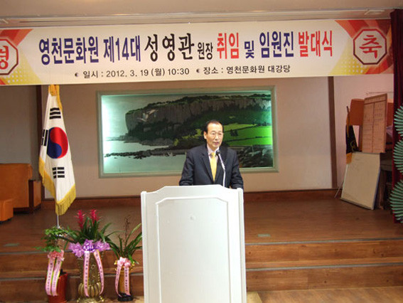 성영관 문화원장은 “지난 4년간 경험의 토대로 앞으로 영천문화원이 찬란한 꽃을 피울 수 있도록 최선을 다해 달려가겠다.”며 “영천시민과 문화가족들이 많은 지도편달을 해 달라.”고 당부했다.