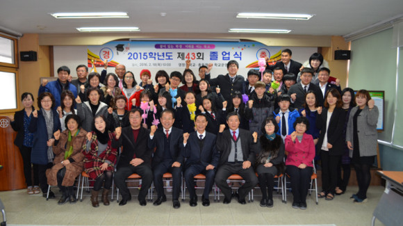| | ↑↑ 영창중학교 마지막 졸업생과 교직원, 학부모들이 졸업식이 열린 강당에서 기념촬영을 했다. | ⓒ 영천시민뉴스 | | 1971년 학교설립인가를 통해 개교한 영창중학교(총동창회장 조보근)는 초대 손신도 교장과 함께 3월 6일 219명의 학생이 입학하며 개교했다. 2010년부터 3년간 도지정 학력향상 시범학교를 운영했으며 2011년 100대 교육과정 최우수교 표창을 받았다. 같은해 영천교육청 전화친절도서비스모니터링 기관평과에서 최우수기관으로 선정되었다.